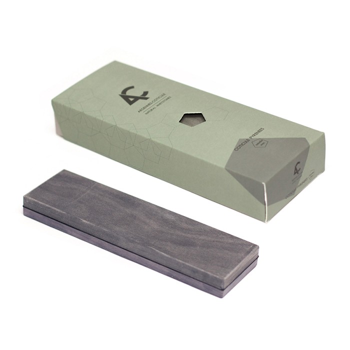 De Ardennes-Coticule slijpsteen is een niet poreuze slijpsteen die alleen met een beetje water gebruikt moet worden. De slijppasta die ontstaat geeft een ongekend mooi slijpresultaat.