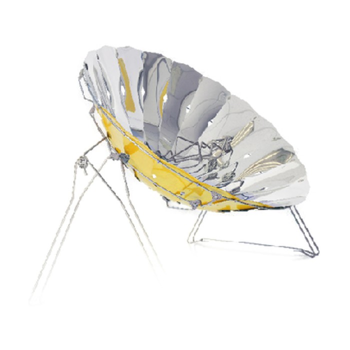 Deze solar cooker combineert kracht, stabiliteit en flexibiliteit. De schaal is uitgerust met een aan/uit-rotatiesysteem voor veilig koken en optimale oriëntatie op de zon. Sterk, licht en volledig vlamloos: de SUNGLOBE® is een echte zonnestraal in je tuin.